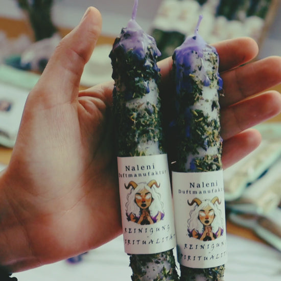 1 Ritualkerze für Reinigung – mit ausgewählten Kräutern ummantelt