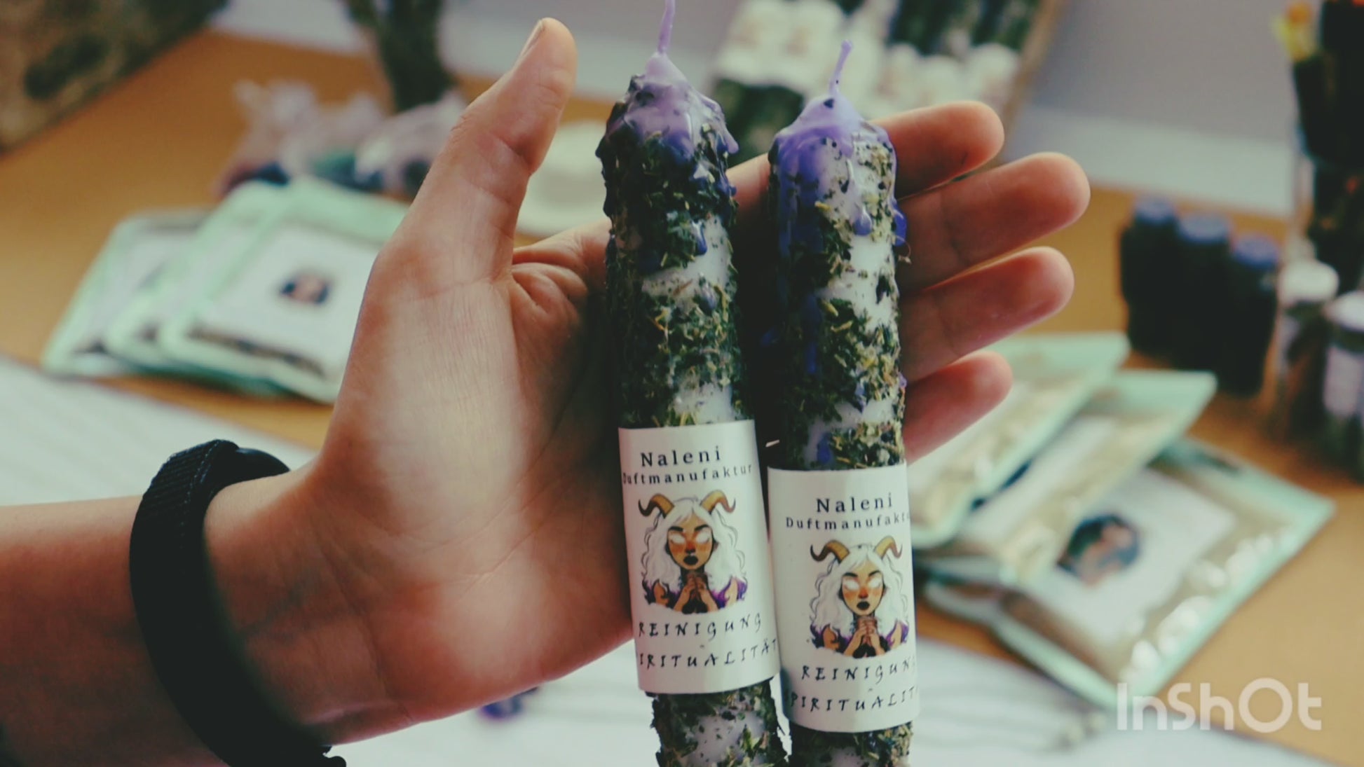 1 Ritualkerze für Reinigung – mit ausgewählten Kräutern ummantelt