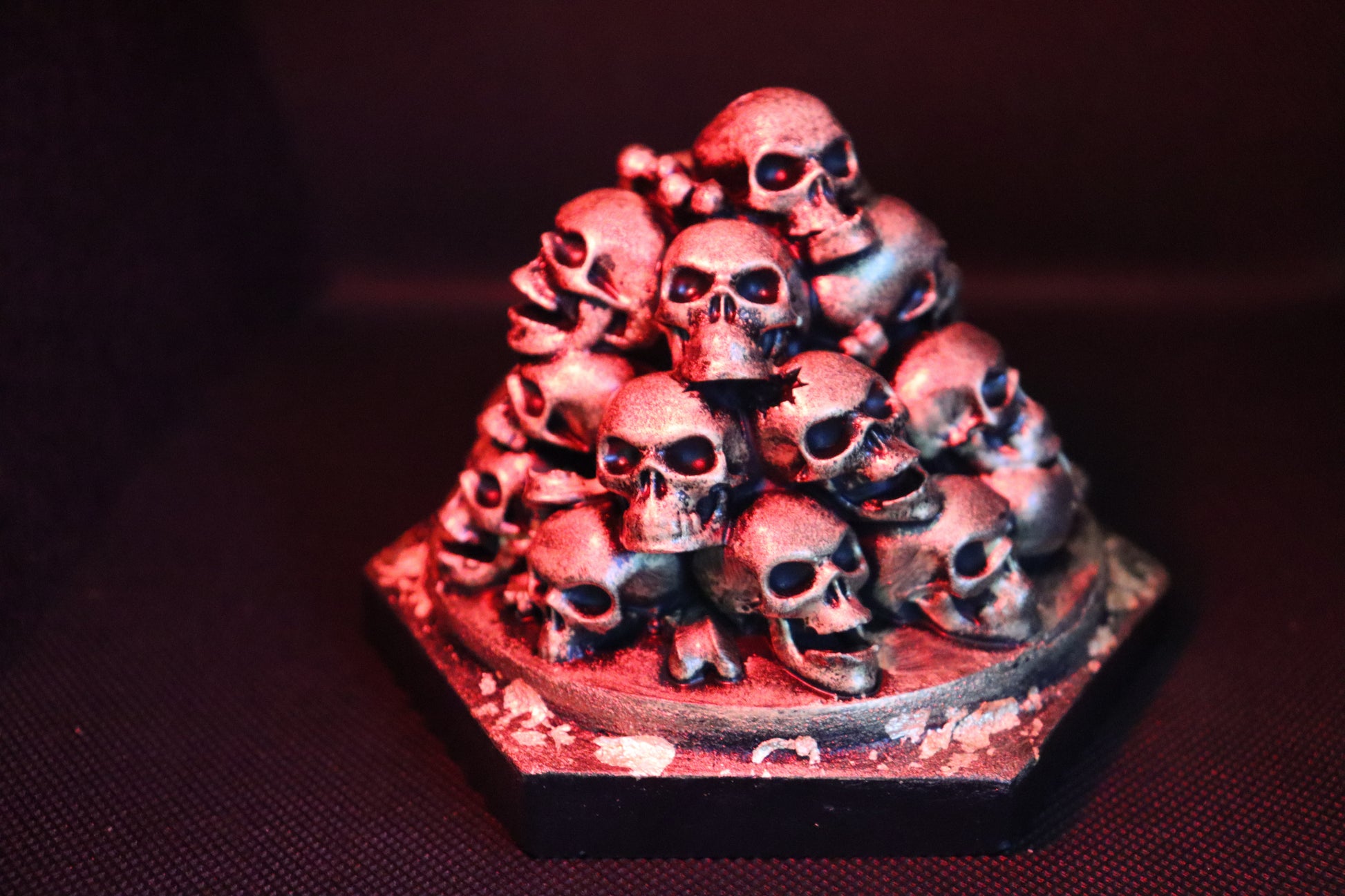 Der Knochenturm ist ein düsterer Blickfang in jedem Raum, handgefertigt mit eigener Betonmischung. Auf der Unterseite ist Filz angebracht damit empfindliche Oberflächen geschützt sind.