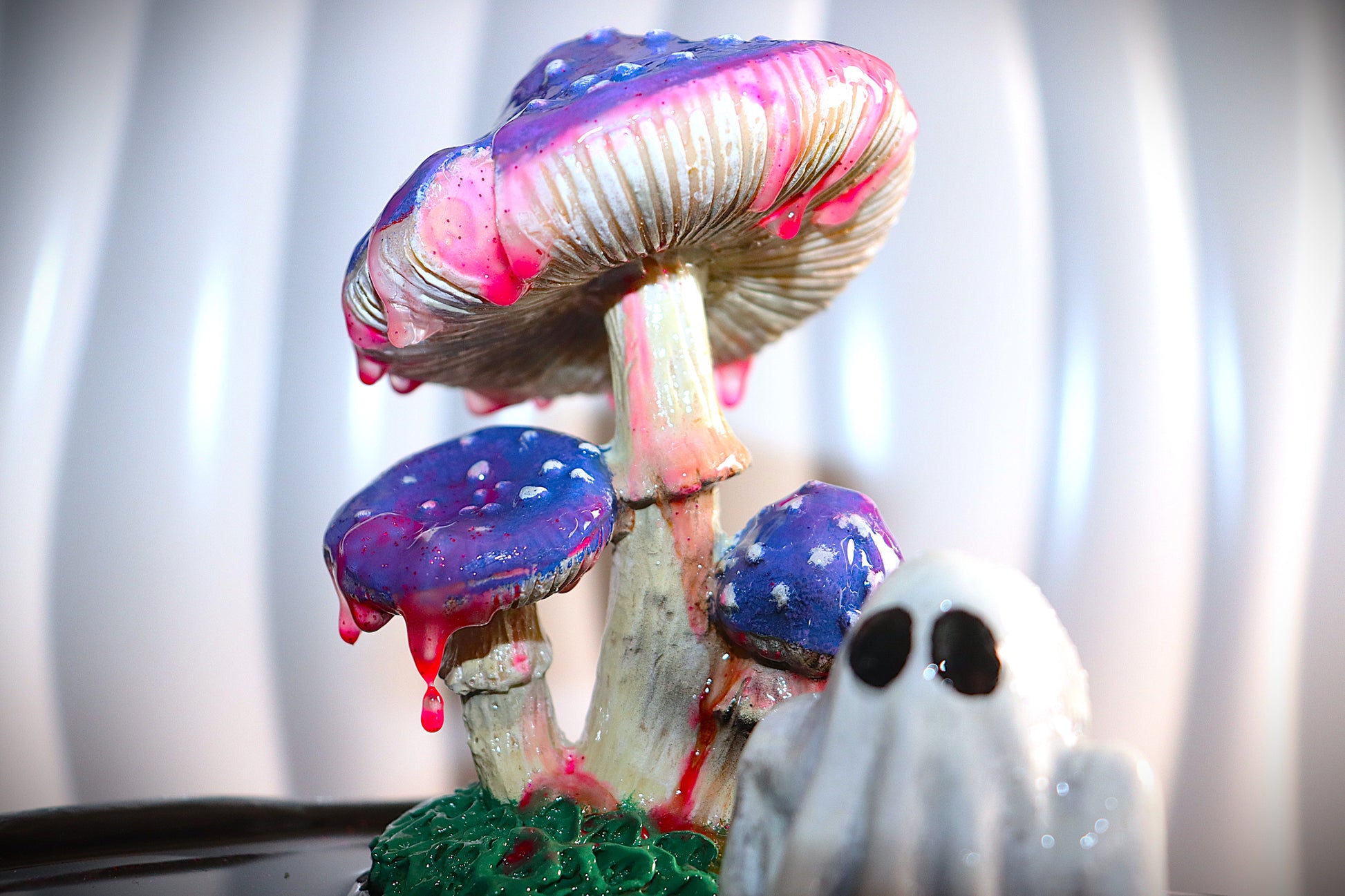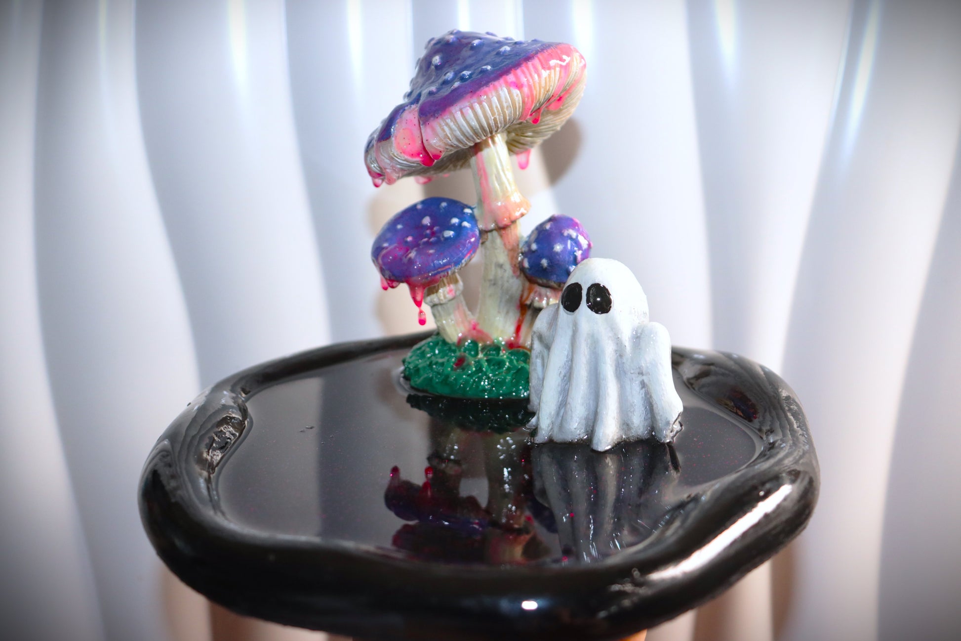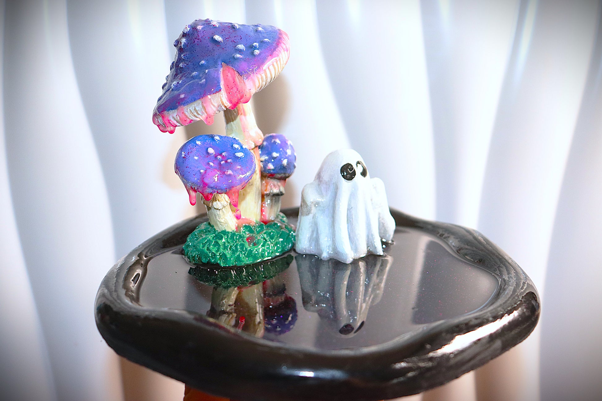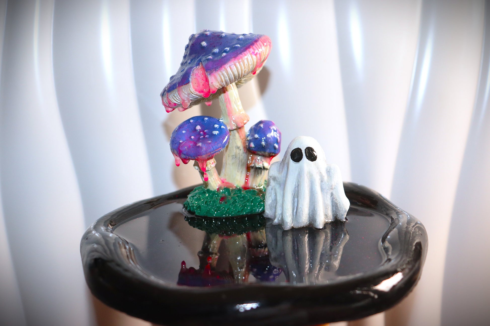 Tauche ein in eine magische kleine Welt – diese handgefertigte Geisterwald-Schale verbindet mystische Pilze mit einem niedlichen kleinen Geist.