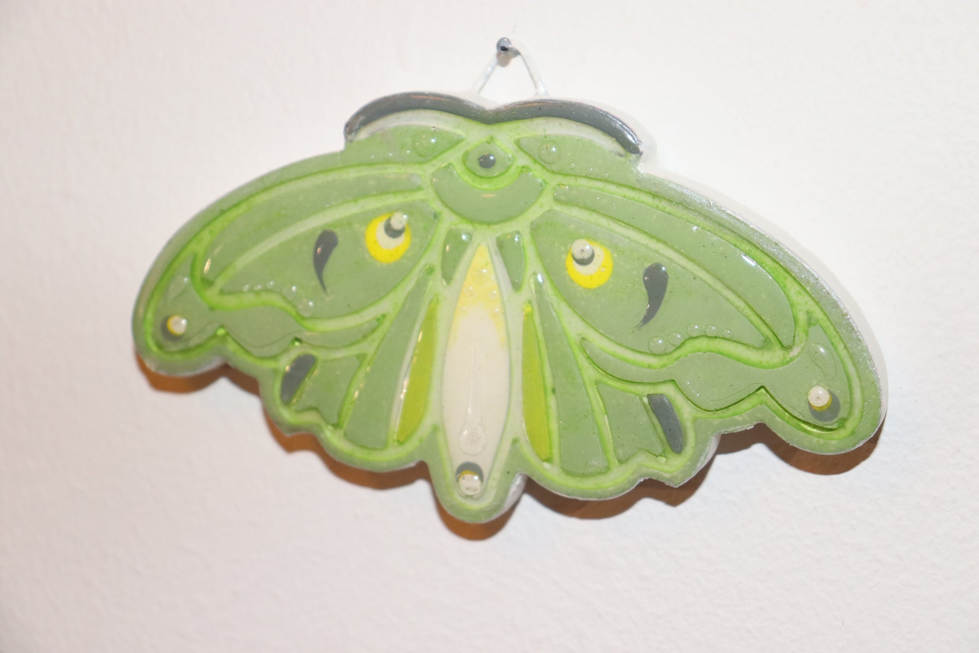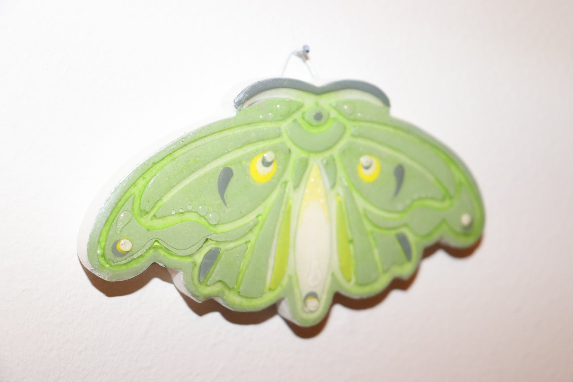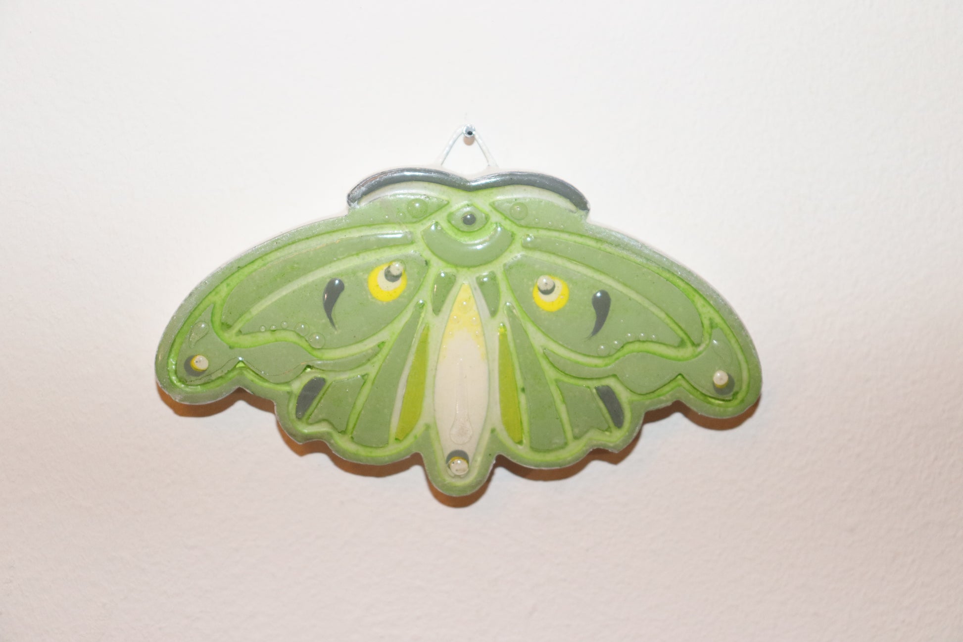Handgefertigte Wanddekoration – Die Grüne Motte Max